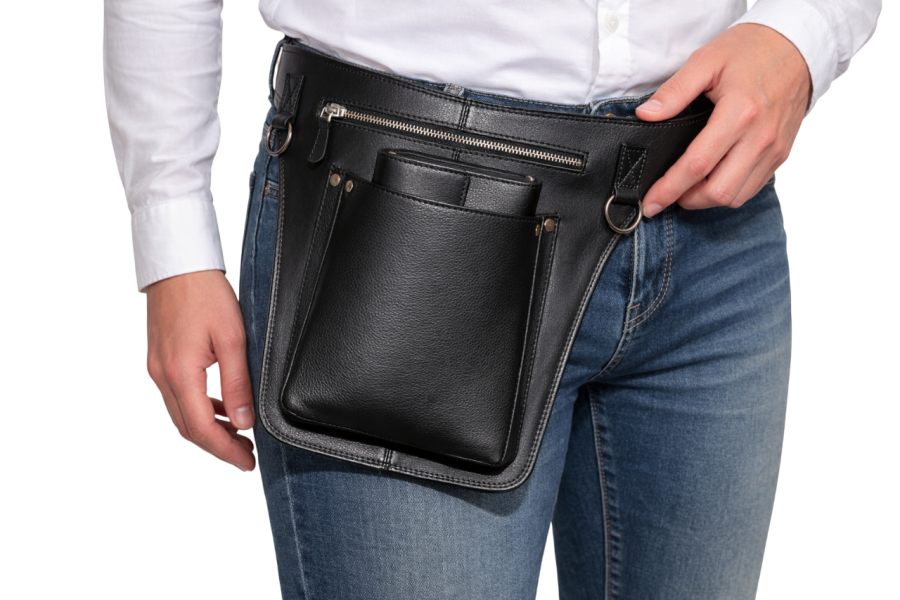 HEUPHOLSTER LUXE UITVOERING ZWART LEDER COMPLEET MET RIEM STOERE LOOK